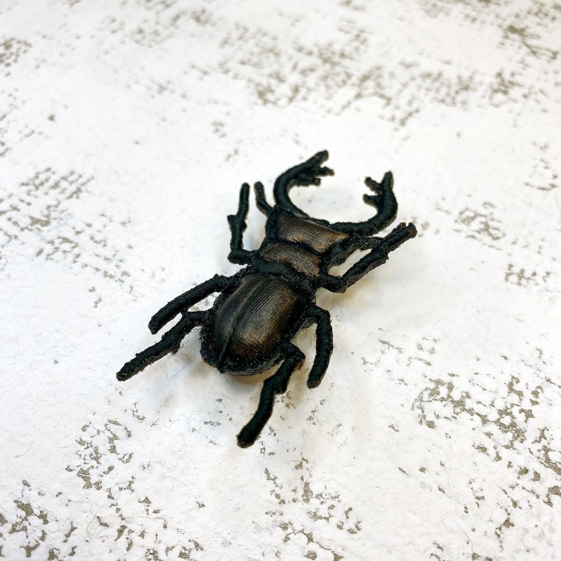 The Stag Beetle is flexible and quite robust, so the legs bend and don't get damaged easily. It is also lightweight and easy to wear, so makes a great addition to lightweight blouses or tops to jackets and coats.