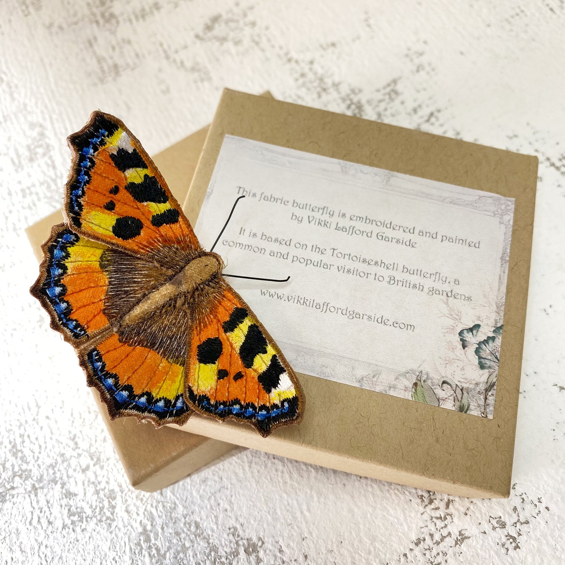 Tortoiseshell butterfly brooch, hand made fabric butterfly brooch pin, Textile butterfly